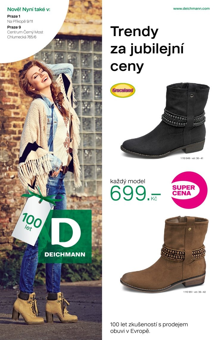 Kromě akčního letáku Deichmann si zde můžete prohlédnout i letáky dalších prodejen obuvy: Baťa, CCC, ECCO, Humanic, Obuv Mixer, Reno obuv