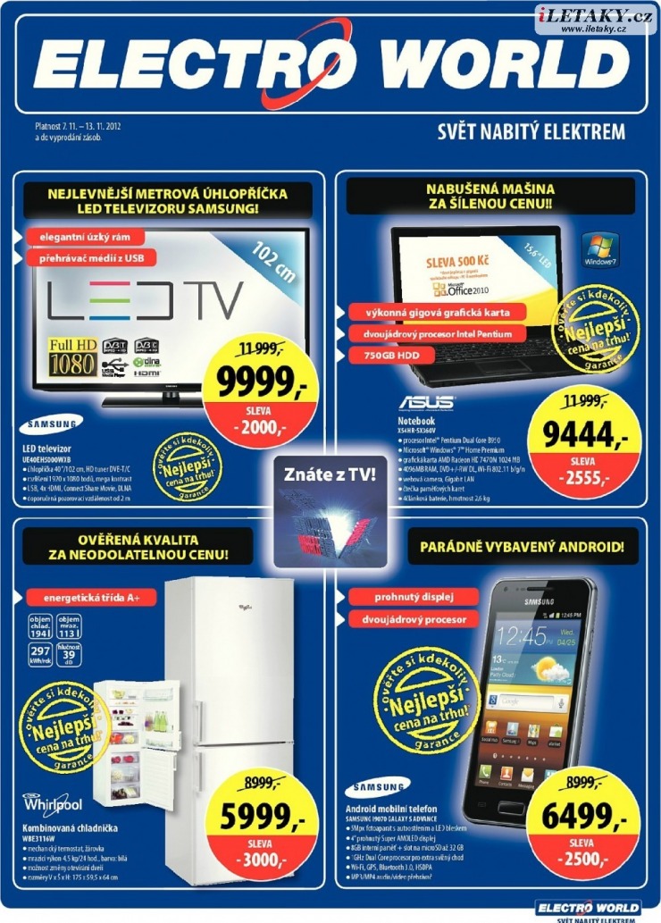 Prohlížíte si akční leták Electro World s platností 07.11. - 13.11.2012.