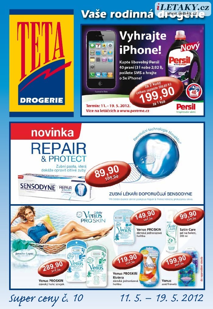 Prohlédněte si leták TETA drogerie s platností 11.05. - 19.05.2012. Na online-letaky.cz naleznete všechny letáky Teta drogerie i letáky dalších drogerií.